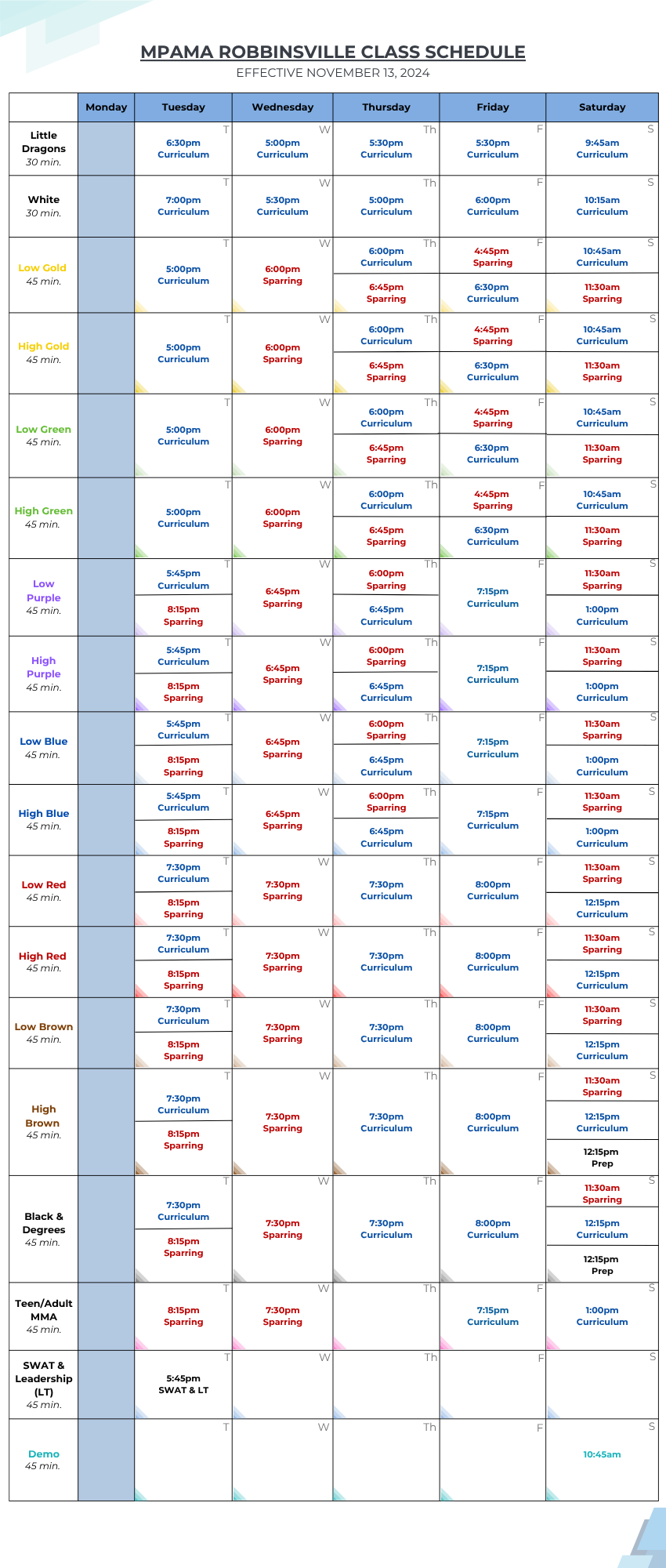 THANK YOU FOR VISITING MPAMA ROBBINSVILLE’S CLASS SCHEDULE PAGE!